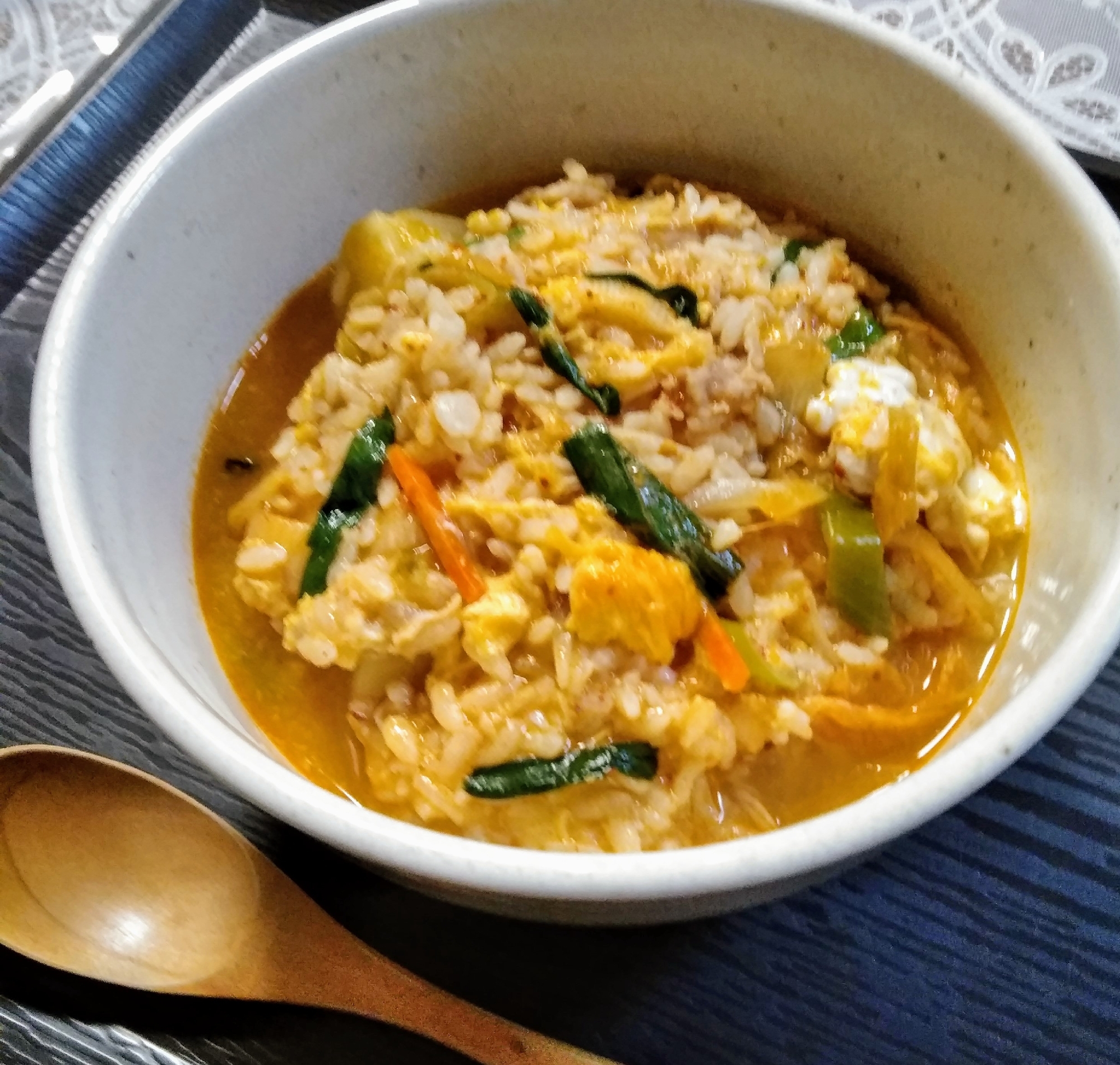 鶏キムチ雑炊で独り昼飯 クッキング爺の献立帖
